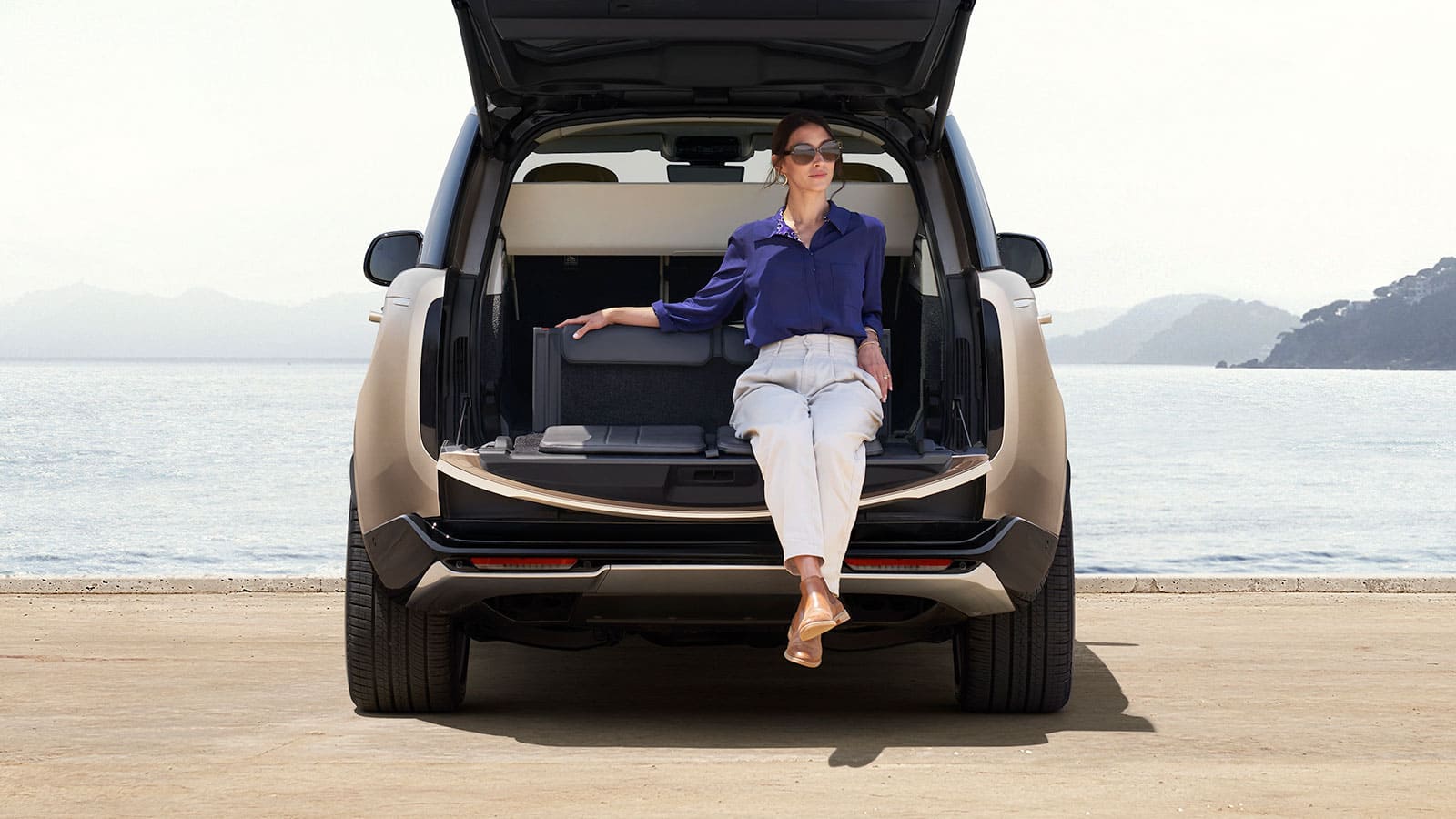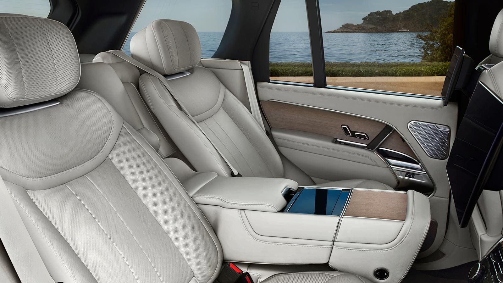 Сделайте фирменную двустворчатую заднюю дверь Range Rover еще более функциональной благодаря опциональным дополнительным сиденьям с кожаными подушками.