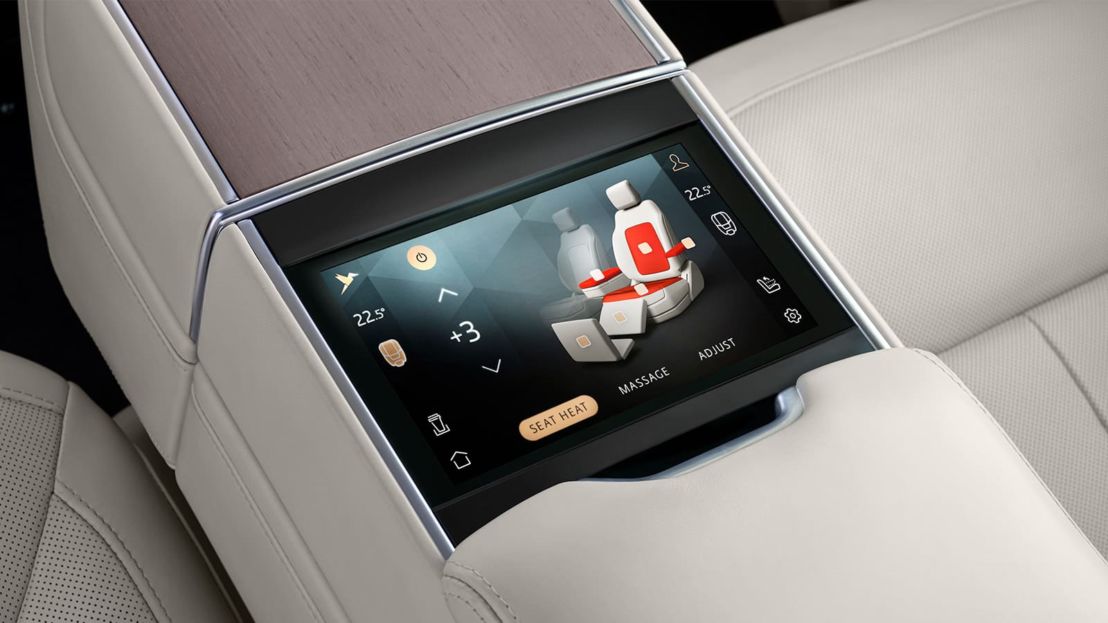 Пульт управления с 8-дюймовым сенсорным экраном, удобно встроенный в подлокотник заднего сиденья повышенной комфортности, позволяет управлять мультимедийной системой для пассажиров на задних сиденьях, климат-контролем и другими функциями обеспечения комфорта.